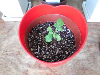ちなみに、下の赤い鉢は何の芽かわかりますか?