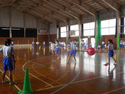 3年生は、学期末恒例の学年レクリェーションを行い、ドッヂビーとYamar Eats(ヤーマーイーツ)の2種目で盛り上がりました。今回のYamar Eatsは体育大会の学年種目をアレンジして、ボールを大きくし、障害物の数も増やし、スタート時にぐるぐるバッドまで加わり、難易度がアップしましたが、声を掛け合って取り組みました。
