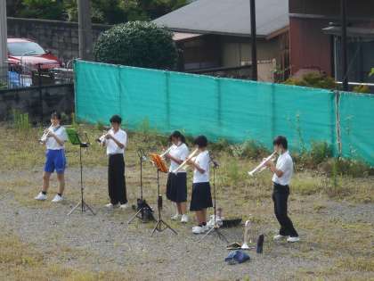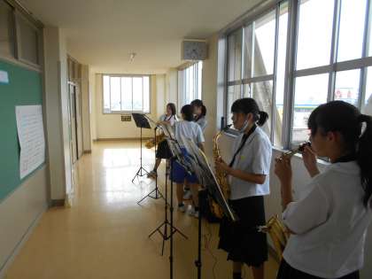放課後の部活動 公開日 2021/07/09 更新日 2021/07/09 山室中学校のページ 7月9日(金) 吹奏楽部は、校内グループと、外グループに分かれて練習中です。外グループは、壁で反射しないので、自分の音がよく分かるそうです。なるほど!