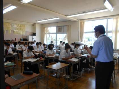 授業風景〜2年生〜 公開日 2021/07/13 更新日 2021/07/13 山室中学校のページ 7月13日(火) 【2年1組:美術】 パッケージデザインの制作中です。飲みたくなるようなキャッチコピー、デザインがいっぱいです。レタリングも商品を印象づける要になりますね。(写真:上、中) 【2年5組:数学】 キリリとした雰囲気の中で、授業に集中しています。(写真:下)
