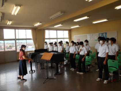 授業風景〜2年生〜 公開日 2021/07/16 更新日 2021/07/16 山室中学校のページ 7月16日(金) 【2年3組:理科】 さて、カラープリントで実力を試してみよう!みんな集中してます。素晴らしい! 【2年4組:音楽】 まずは発声練習から。「両足を開いて床に付けて〜地球を温めるイメージで〜」 【2年6組:国語】 夏休みの学習の進め方のイメージはできましたか?