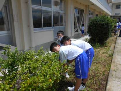 環境整備活動〜チーム1年2組〜 公開日 2021/07/16 更新日 2021/07/16 山室中学校のページ 7月16日(金) チーム2組は花壇の整備です。草がなくなり、見違えるほどすっきりしました。ありがとうございます!