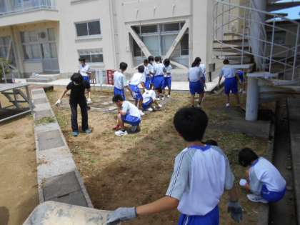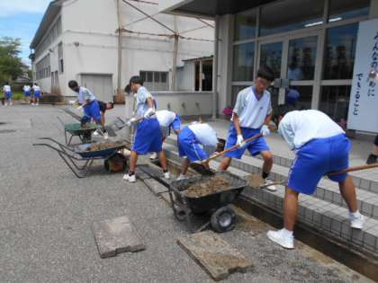 チーム6組は、技術室前の除草、玄関前の溝の泥をすくってくれました。泥がなくなり、すっきりきれいになりました。ありがとうございました!