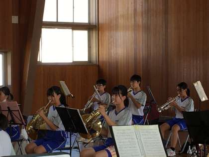 頑張れ!吹奏楽部! 公開日 2021/07/17 更新日 2021/07/17 山室中学校のページ 7月17日(土) 吹奏楽部は明日の演奏会に向けて第二体育館で最終調整です。暑い中でも部員がひとつになって練習しています。明日の演奏会頑張ってください!
