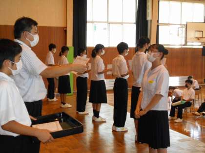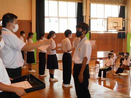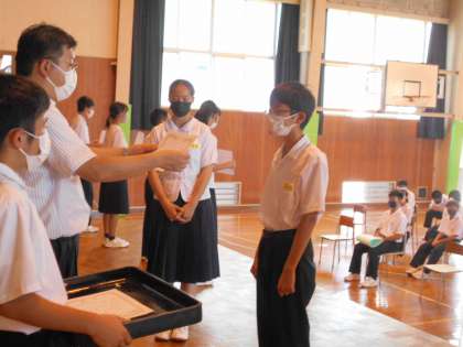7月20日(火) 続いて学級MVPが発表されました。学年主任から、各自に賞状が渡されます。
