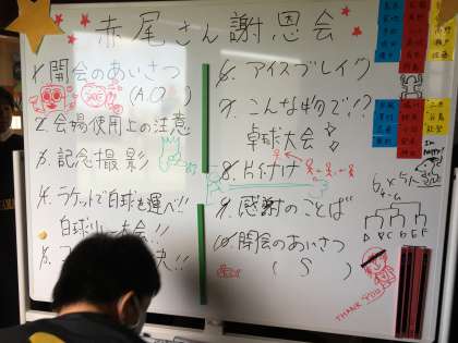 卓球部送別会 公開日 2021/07/24 更新日 2021/07/24 山室中学校のページ 7月24日(土) 長年、山室中卓球部をご指導くださったコーチの送別会をしました。ゲームあり、お楽しみコーナーありの楽しいひとときでした。卓球を通して、技術だけでなく様々なことを教わりました。本当にありがとうございました!