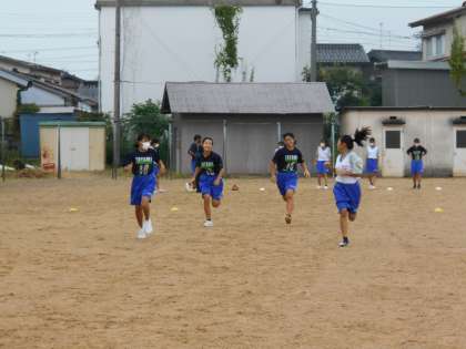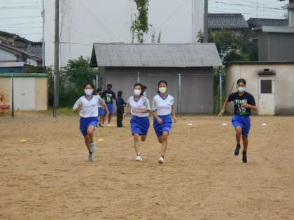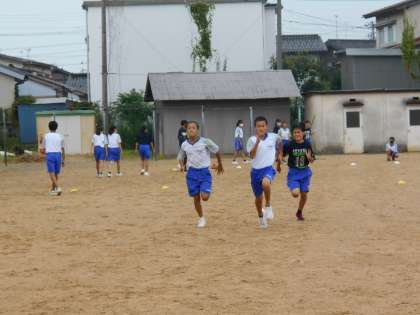 小雨の中、陸上部は100mを何本も流しています。仲間と共に、楽しく活動中です!