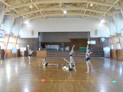全国大会出場演技披露 その2 〜新体操部〜 公開日 2021/08/05 更新日 2021/08/05 山室中学校のページ 8月5日(木) 幼稚園の頃から始めたという、クラブチームの活動で、仲間との息もぴったりです。迫力ある演技に、胸が熱くなりました!本当に素晴らしい時間をありがとうございました。コーチ、仲間との絆を胸に、全国大会でも頑張ってきてください。 演技後、後援会からの激励費を校長先生から渡しました。