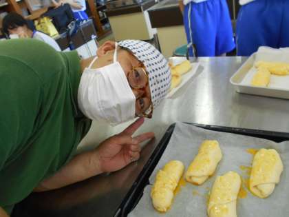 夏休みの部活動〜家庭科部〜 公開日 2021/08/10 更新日 2021/08/10 山室中学校のページ 8月10日(火) さて、あとはオーブンに入れてあとは焼き上がるのを待つだけです。本日のパン作りの師匠は、出村先生です。(写真:上) ロールパンのできあがり!お味の方はいかがでしたか?夏休みの思い出になりましたね!(写真:中、下)