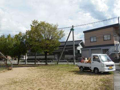 校庭の木々が、害虫に食われていたため、害虫駆除をお願いしました。葉が葉脈だけになっている桜や桑の木に、スプレーで液を吹きかけてくださいました。