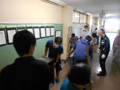 職員室前の模様替え 公開日 2021/08/23 更新日 2021/08/23 山室中学校のページ 8月23日(月) 職員室前では、先生方が力を合わせてロッカーを移動中です。何と!長年使っていた集配ロッカーがリニューアルすることに。どのような姿に変貌を遂げたのか・・・。 写真上:もともとあった集配ロッカー(もう見納めです。) 写真中:先生方で撤去しています。 写真下:きれいすっきり無くなりました。