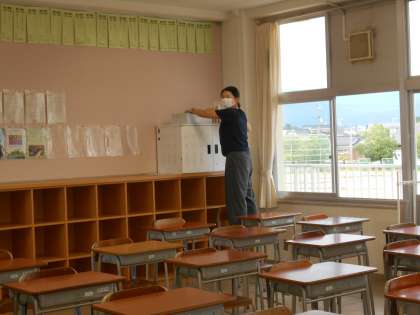 新学期の準備その1 公開日 2021/08/25 更新日 2021/08/25 山室中学校のページ 8月25日(水) 各担任の先生方は、始業式に向けて教室環境の最終点検中です。生徒の皆さんに会える日を待っています。