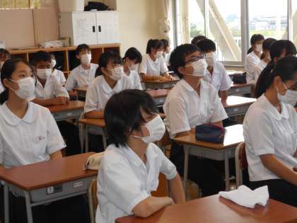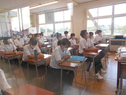 各部活動の受賞報告のあと、始業式を行いました。放送による始業式でしたが、みんな真剣に話を聞いていました。