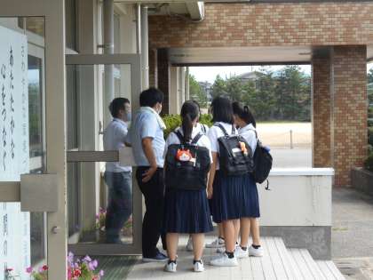 さようなら、また明日! 公開日 2021/08/27 更新日 2021/08/27 山室中学校のページ 8月27日(金) 2学期第1日目を終え、「さようなら!」と元気よく下校していきます。まだまだ名残が尽きないのか、あちこちで談笑する生徒や先生がたくさんいます。