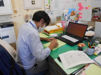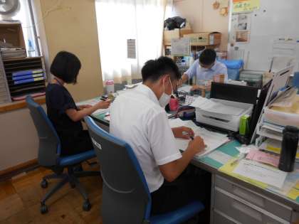 午前中で生徒は放課、午後の先生方は・・・もちろん、皆さんが一生懸命取り組んだ夏休みのしおりを読んだり、宿題のチェックをしたりしていますよ!