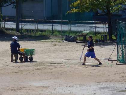 休日の部活動その3 公開日 2021/08/28 更新日 2021/08/28 山室中学校のページ 8月28日(土) ソフトボール部は、スプリンクラーで水をまいてグラウンドを落ち着かせてから練習開始!顧問の先生が投げるボールを気持ちよく打っています。気持ちよさそう!