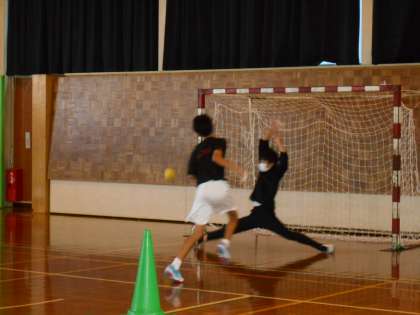 休日の部活動その4 公開日 2021/08/28 更新日 2021/08/28 山室中学校のページ 8月28日(土) 男子ハンドボール部は、相手を交わしながらのシュート練習です。ゴール前の攻防は激しいですね。顧問の先生の指導にも熱が入ります。