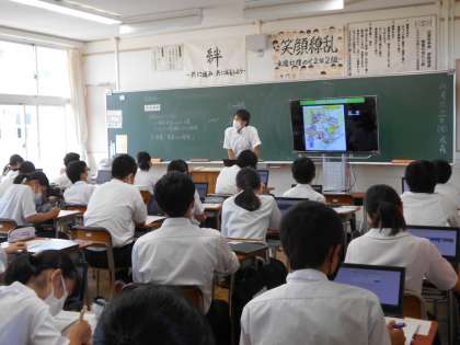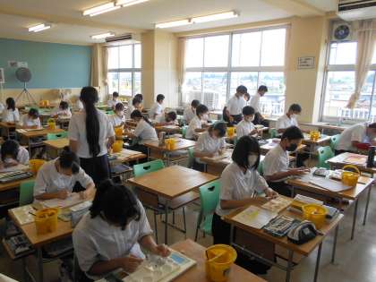 授業風景2年生 公開日 2021/08/31 更新日 2021/08/31 山室中学校のページ 8月31日(火) 2年生は、しっかりと授業を集中して受けています。2学期スタートの意気込みを感じます。 写真上:1組理科:次回行う実験のレポートを書いています。 写真中:2組家庭科:家庭内で起こる事故について予想しています。 写真下:5組美術:パッケージデザインは、いよいよ色塗りにかかり始めました。