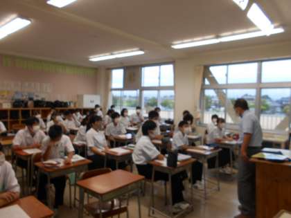 授業風景3年生 公開日 2021/09/01 更新日 2021/09/01 3学年 9月1日(水) 3年2組の技術では、出村先生の話を熱心に聞いています。 3年4組の国語では、児童労働に関するスピーチの準備をしています。 3年5組の国語では、スピーチを行うための情報収集をクロームブックで行っています。