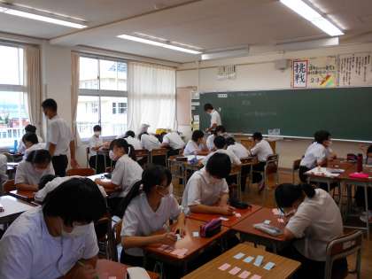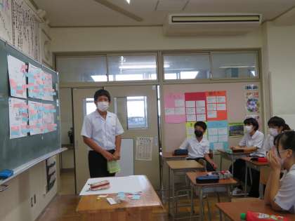 2年生学活 公開日 2021/09/03 更新日 2021/09/03 2学年 昨日の学活では、「みんなが安心して落ち着きのある学級にするために」をテーマに学級で話し合いました。普段の何気ない言葉の使い方や、環境を美しく整える等、たくさんの具体的なアイディアが出されました。自分たちの姿を把握したり、それについての取り組みを考えたりするよい時間になりました。