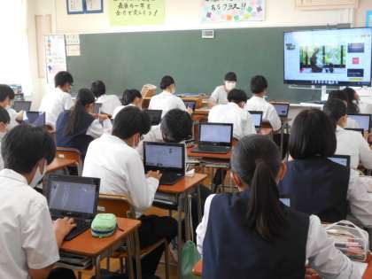 9月3日(金) 今日もしっかり顔を上げて先生の話を聞いています。クロームブックの扱いにも慣れてきました。