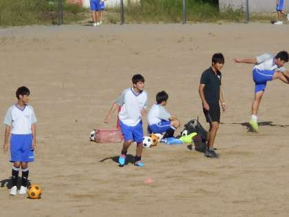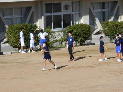 放課後の部活動その2 公開日 2021/09/06 更新日 2021/09/06 山室中学校のページ 9月6日(月) サッカー部、ハンドボール部も声をかけながら、部活に取り組んでいます。 短い時間でも、ポイントを絞って練習しています。