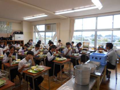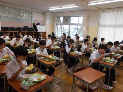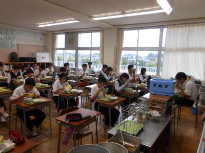 給食時間は、「黙食」です。ずいぶん慣れてきました。静かに、おいしくいただいています!