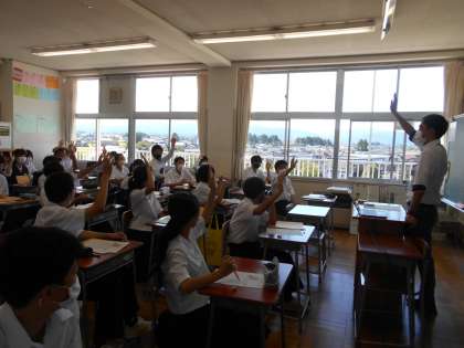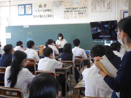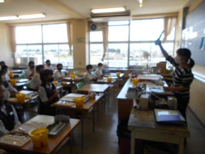 1年2組社会:雨温図や写真を見て世界の気候の特徴を考えます。