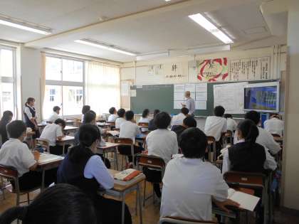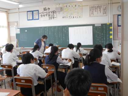 続・学校訪問研修会その1 公開日 2021/09/10 更新日 2021/09/10 山室中学校のページ 9月10日(金) 昨日紹介しきれなかった公開授業を紹介します。 1年1組国語:様々な比喩表現を読んで、比喩の効果を考えます。 1年6組数学:どちらの店の衣料がお得か、文字式を使って説明します。 2年1組社会:幕末の政治がなぜ行き詰まりを見せたのかについて、グループで考えます。