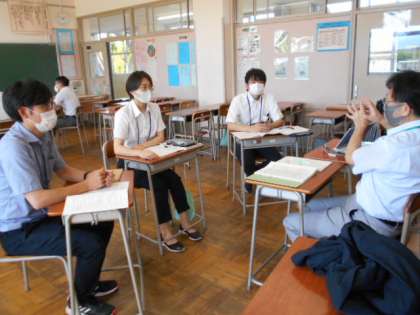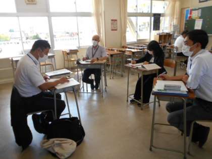 続・学校訪問研修会その3 公開日 2021/09/10 更新日 2021/09/10 山室中学校のページ 9月10日(金) 授業後は、各教科に分かれて、指導主事や教科等指導員の先生方からアドバイスをいただきました。