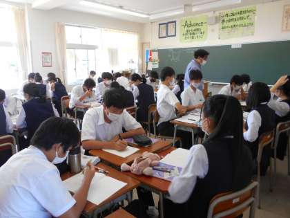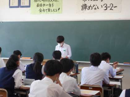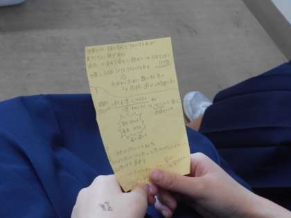 3−2:スピーチメモを元にスピーチをしています。(写真中、下)