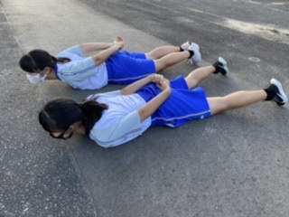 放課後の部活動その5 公開日 2021/09/16 更新日 2021/09/16 部活動 陸上部では、毎日の筋トレやトレーニングを頑張っています。 写真は背筋トレーニングをする1年生と、長距離の走り込みをしている2年生の様子です。