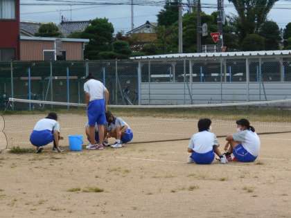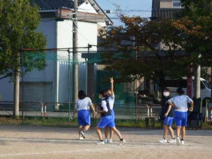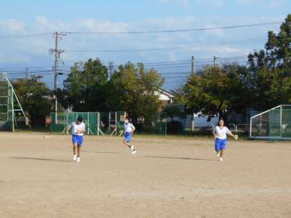 放課後の部活動その3 公開日 2021/09/16 更新日 2021/09/16 山室中学校のページ 9月16日(木) ソフトボール部は、バットを振った後、ぐるりと一周ベースをまわります。 ソフトテニス部は、コートの草むしりをして、コート整備をしてから練習開始です。