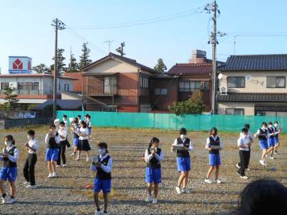 放課後の部活動その4 公開日 2021/09/16 更新日 2021/09/16 山室中学校のページ 9月16日(木) 吹奏楽部は、マーチングの隊列の練習です。息を合わせての移動、ずいぶんと隊形が様になってきました。