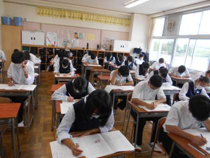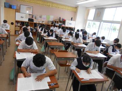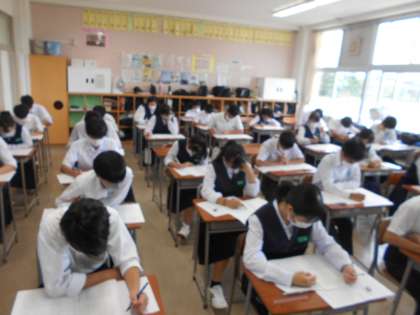3年実力テスト 公開日 2021/09/17 更新日 2021/09/17 3学年 9月17日(金) 3年生は実力テスト2日目です。真剣なまなざしでテストを受けています。 写真上:3−1 写真中:3−2 写真下:3−3