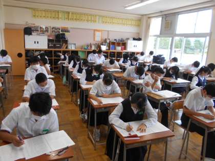 3年実力テスト 公開日 2021/09/17 更新日 2021/09/17 山室中学校のページ 9月17日(金) ラスト1時間になりました。最後まで気を抜かずに頑張りましょう! 写真上:3−4 写真下:3−5