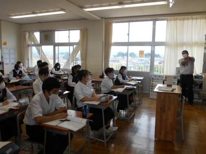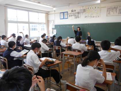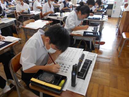 授業風景1年生 公開日 2021/09/17 更新日 2021/09/17 山室中学校のページ 9月17日(金) 1−1英語:What food do you like?が使えるかな? 1−2数学:先生の説明を真剣に聞いています。 1−5国語:小筆でひらがなの練習中です。