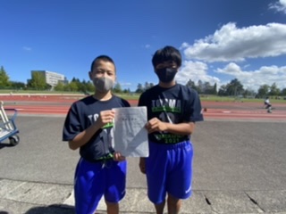 山室中学校からは、1年生の2名が男子150mと男子ジャベリックスローに出場し、他校の2・3年生の選手が多くいる中、検討しています!