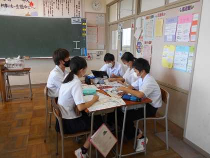 2−4総合:高岡校外学習の、班別コースのプランを立てています。地図を広げてとても楽しそうに話し合っています。