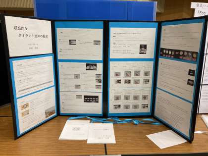 夏休み中に一生懸命研究をした内容が、大きなパネルにまとまりました。明日から始まる展覧会に出品されます。1年生から2名、2年生から2名が出品しております。今年度は一般公開がありませんので、ぜひ写真でご覧ください。(下の写真は1年生のものです。)