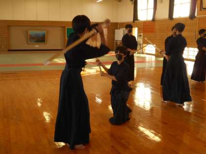 剣道部は、昇級、昇段審査に向けて型の練習に励んでいます。細かいところまでこだわっています。かっこいいです!