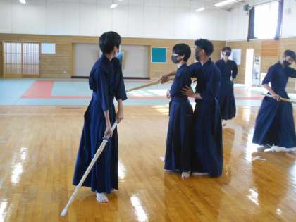 放課後の部活動その2 公開日 2021/09/25 更新日 2021/09/25 山室中学校のページ 9月25日(土) 剣道部は、昇級、昇段審査に向けて型の練習に励んでいます。細かいところまでこだわっています。かっこいいです!