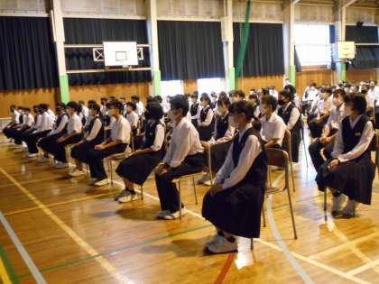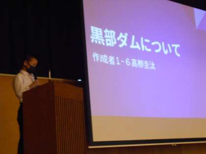 第1学年 学年発表 公開日 2021/10/01 更新日 2021/10/01 1学年 1学年の総合的な学習の時間は、「富山のよさを調べよう」のテーマのもと、夏休みに調べ学習を行い、9月にクラス発表をしました。 今日は各クラスの代表者1名が、学年全員の前で発表をしました。 大きな声で元気よく発表ができました。また、写真や動画、イラスト等を用いたスライドもすばらしかったです。中には、クイズを作っている人もいました。 聴いている生徒の態度も良く、発表者に大きな拍手を送っていました。