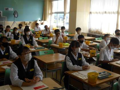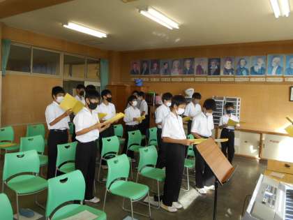 1−3音楽:パートリーダーが中心となって、合唱コンクールの練習をしています。