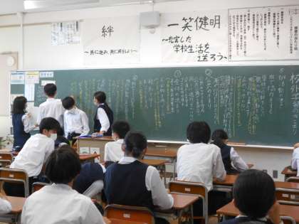 2年生 校外学習に向けて 公開日 2021/10/08 更新日 2021/10/08 2学年 10月8日(金) 2年生は、10月27日の校外学習に向けて、持ち物やルール等の話し合いをしています。黒板一杯に全体で確認すべき内容が書き込まれています。