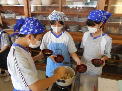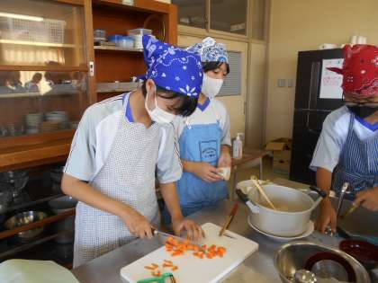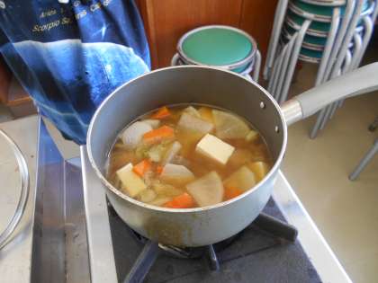 五感が喜ぶけんちん汁づくり 公開日 2021/10/11 更新日 2021/10/11 山室中学校のページ 10月11日(月) 1−3、1−6家庭科では、念願の調理実習を行いました。テーマは、「五感が喜ぶけんちん汁」です。視覚を喜ばせるために切り方をこだわって・・・味覚を喜ばせるために、だしは昆布と鰹節からとりました!だしの旨みが効いたおいしいけんちん汁ができました。