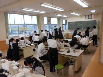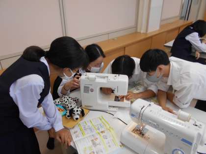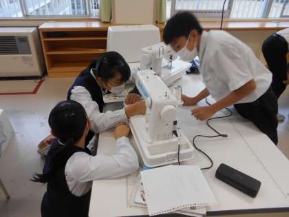 授業風景2年生 公開日 2021/10/12 更新日 2021/10/12 2学年 10月12日(火) 2−6家庭科:ミシンの糸かけの方法を班で真剣に考えながら取り組んでいます。「小学校の時にやったはずだよね?」「上糸ってこの順番で合っている?」