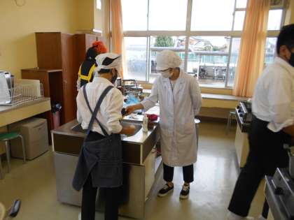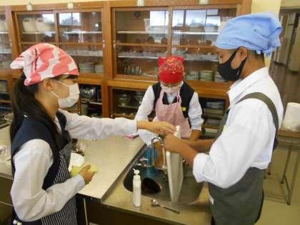 1−1家庭科:待ちに待った調理実習です。仕事の分担や、手順の確認を何度もして臨んだ調理実習でしたが・・・「どんな順で野菜を炒めるんだっけ?」「だしの汁が少ない!」色々ハプニングもありましたが、1組のチームワークで何とか乗り切り、今日も五感が喜ぶけんちん汁ができました。今日は学校栄養士の先生も参加してくださいました。ありがとうございました。