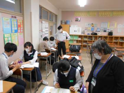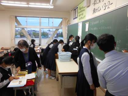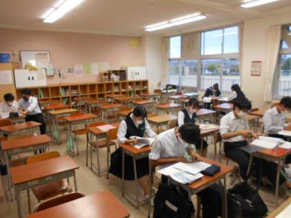 熱い!3年生放課後学習 公開日 2021/10/13 更新日 2021/10/13 山室中学校のページ 10月13日(水) 放課後の3年生教室は、定期テストに向けて自習や先生方に質問する生徒の熱気で熱いです!生徒同士で教え合ったり、先生方に質問したり、自主的に学ぶ姿に感心します。3年生の先生方はいつでも生徒の質問に答えられるよう、みんな集まって見守っています。