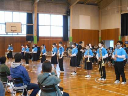 吹奏楽部ミニコンサート2021 公開日 2021/10/17 更新日 2021/10/17 山室中学校のページ 10月17日(日) 第二部は衣装も替えて、3年生女子はリボンも付けて雰囲気をがらりと変えました。振り付け有り、手拍子有り、3年生のコメント有りの盛りだくさんの内容でした。 吹奏楽部の皆さん、素晴らしい演奏をありがとうございました! 応援に来てくださった、保護者のみなさまも、ありがとうございました!